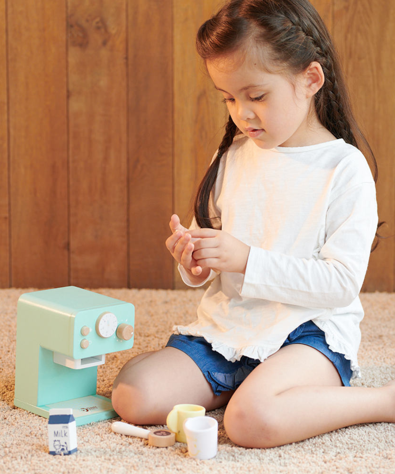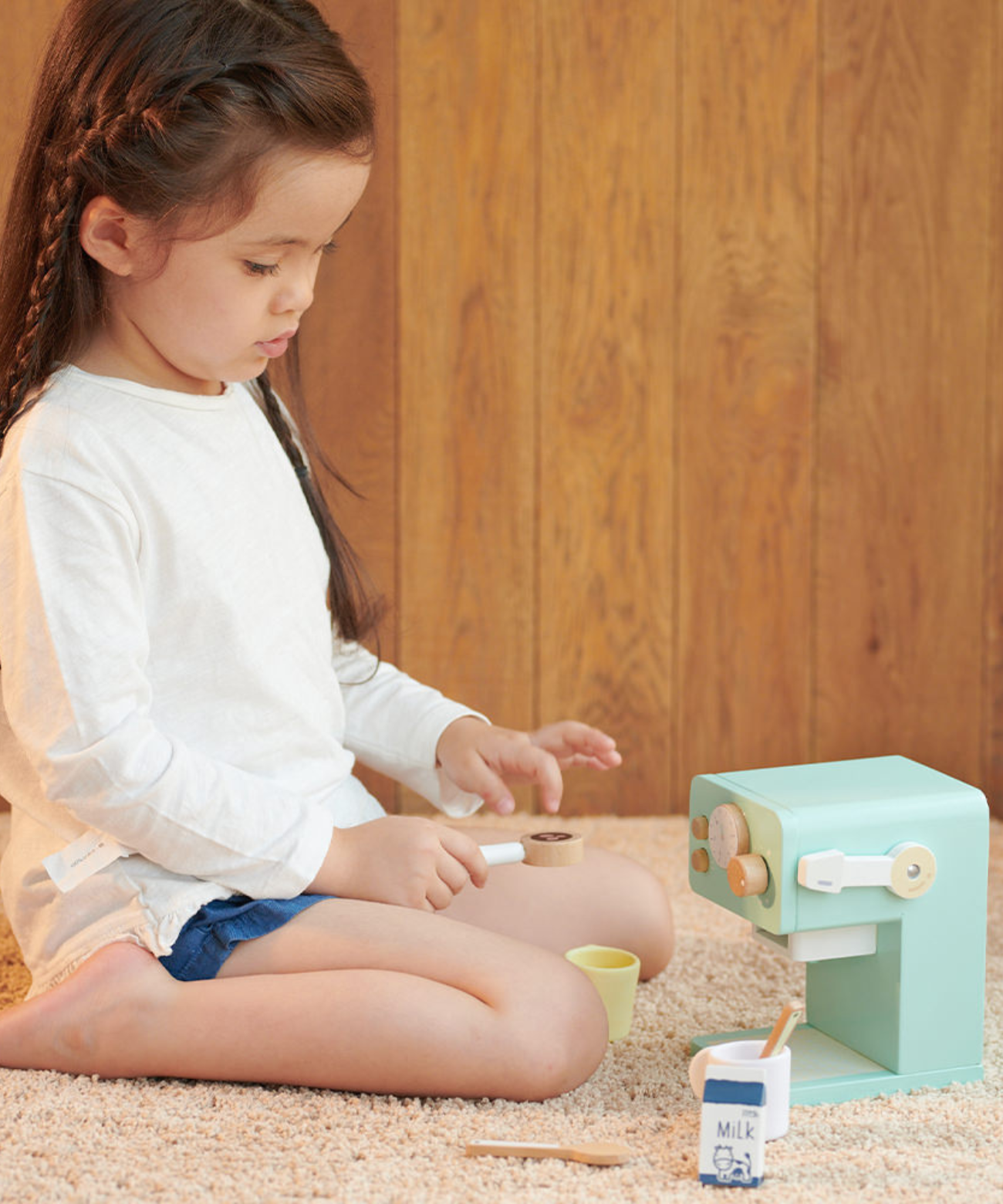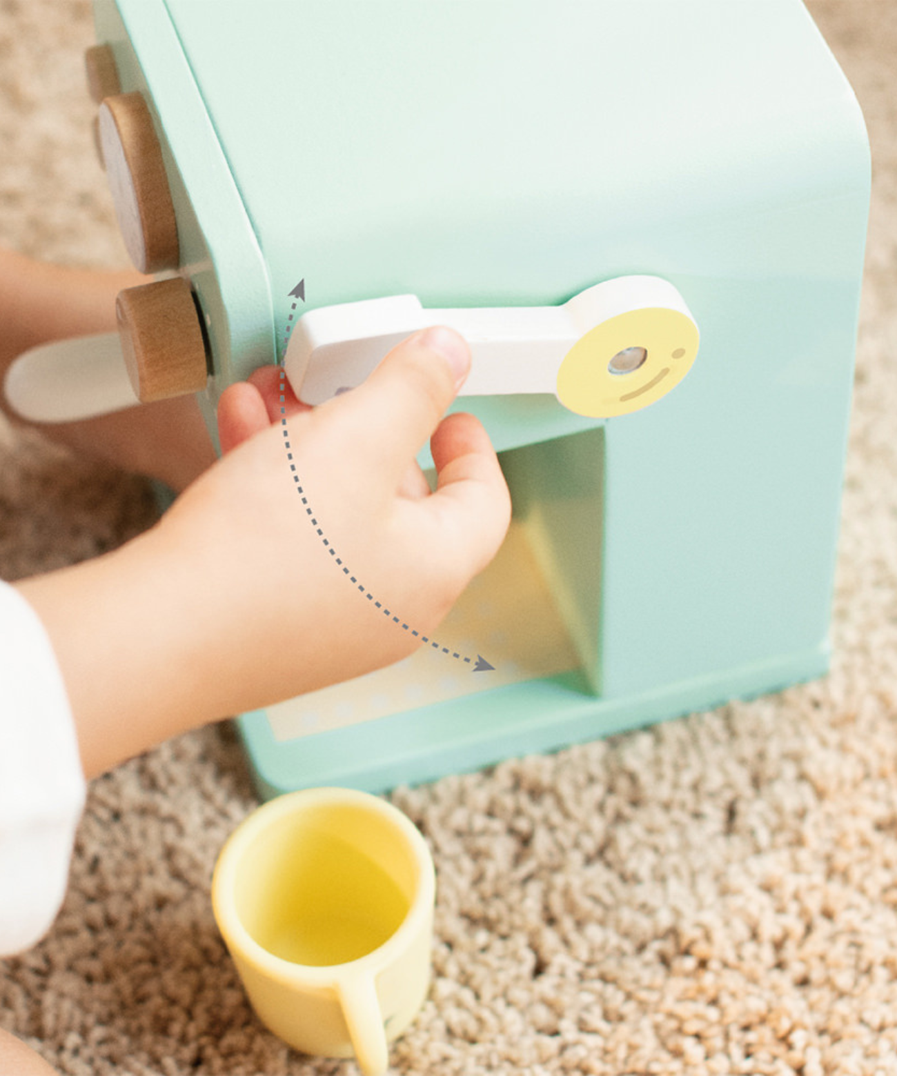 Brew up hours of imaginative fun with this beautifully designed wooden coffee machine. Complete with two mugs, spoons, a coffee filter, and a milk carton, it offers everything little baristas need for a realistic coffee-making experience.