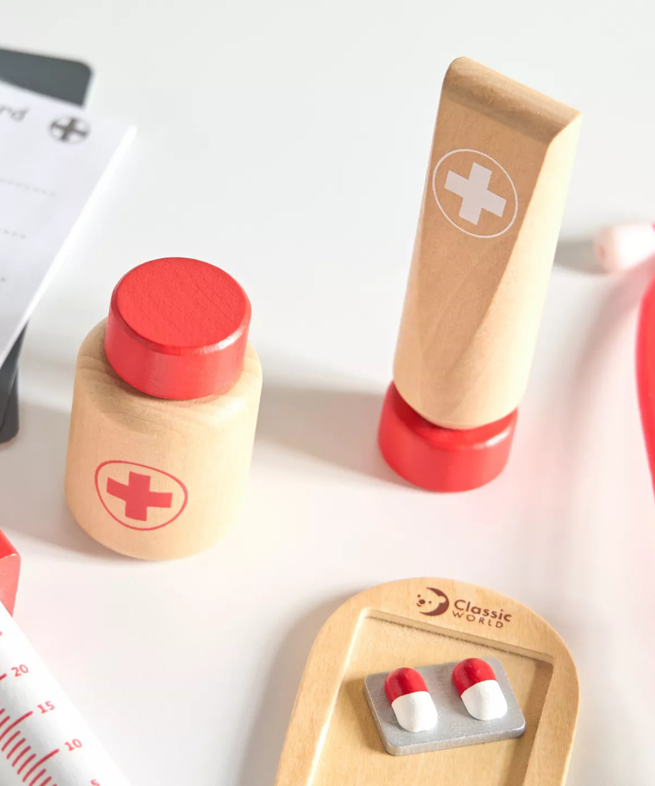 Children can use the stethoscope to “listen” to heartbeats, take temperatures with the thermometer, give pretend injections, and care for their favorite patients—whether teddy bears or dolls! Through role play, kids develop empathy, communication, and problem-solving skills while learning about kindness and compassion.