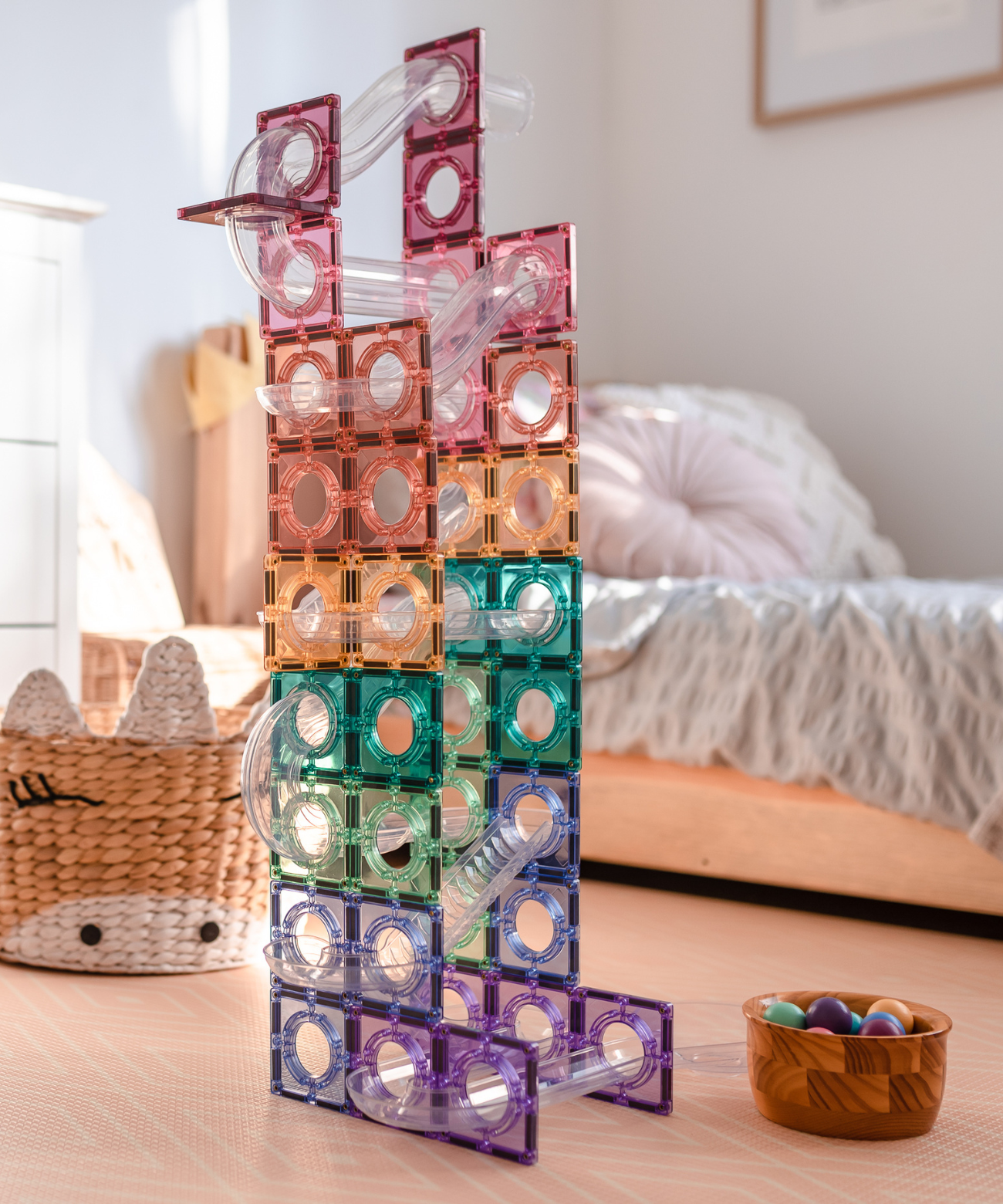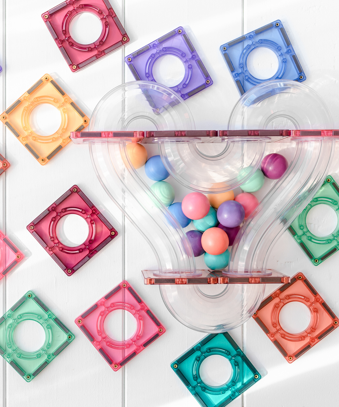 With this open-ended Pastel Ball Run Pack, the whole family can enjoy endless ball run designs PLUS explore the limitless potentials for your ball run pieces – from sensory runs, sorting tubes, mazes, and so much more!