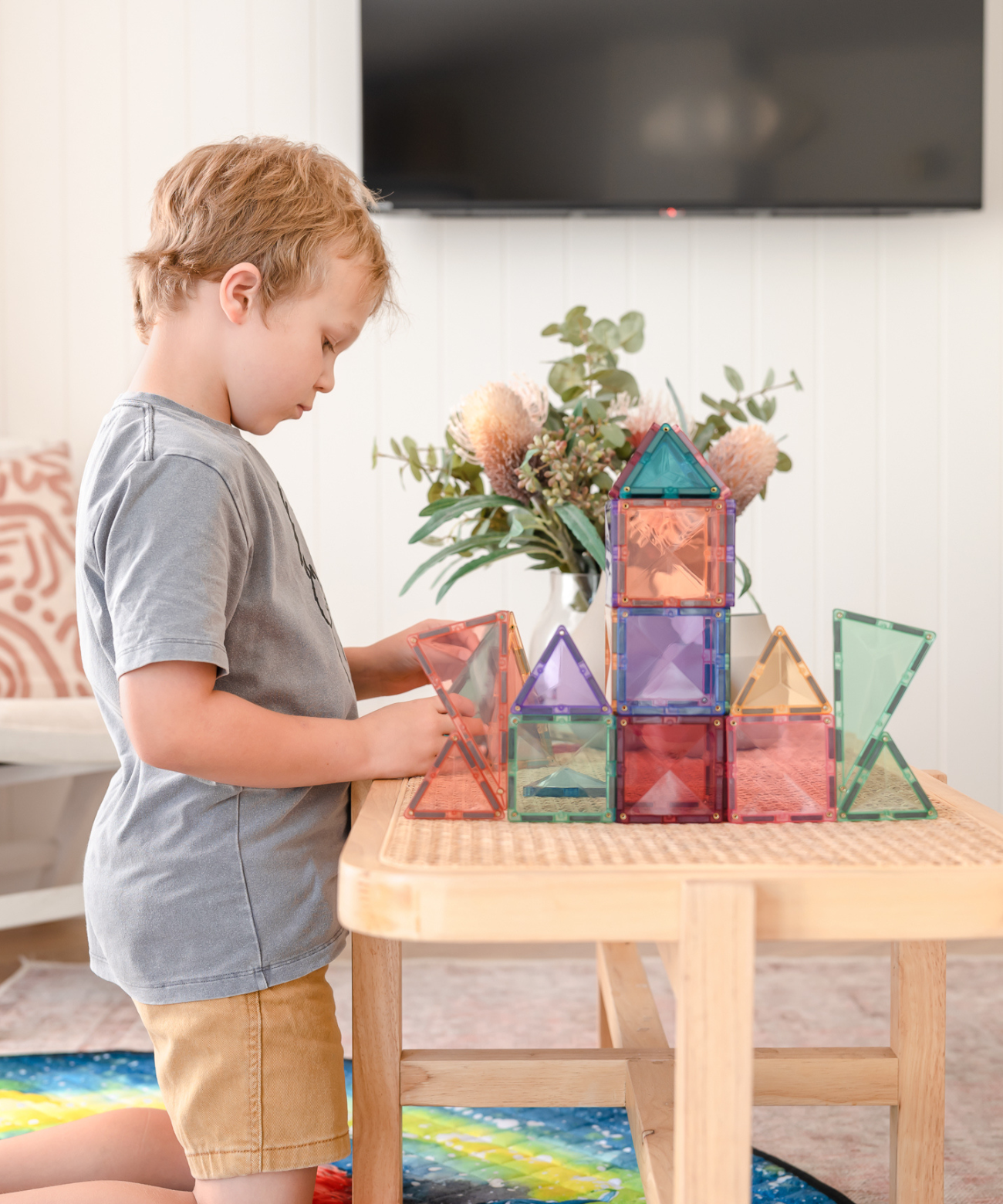 Discover your inner engineer, artist and designer when you build and create with the Pastel Starter Pack! Featuring a variety of small and large squares, as well as equilateral, isosceles and right-angled triangles in our unique earthy pastel colours, the 64 Piece Pastel Starter Pack offers limitless play potential.