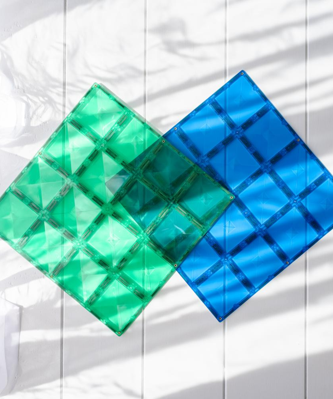Base Plates are large building plates featuring our signature bevel design with numerous magnet points that will expand the potential of magnetic tile play. Support the creation of taller towers and sturdier castles; inspire symbolic play as you create tents, doll beds and ice-cream stalls; develop fine motor skills by creating mazes and coin drops; unleash imaginations through small world play as the Lemon & Peach Base Plates become a sandy beach and coral reef, or corn field and desert landscape. If you can dream it, you can build it!