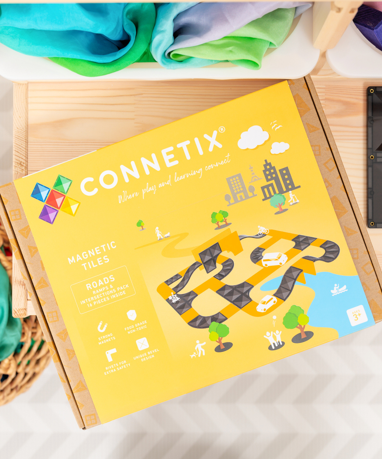 Expand the potential for imagination and play as you lay the foundations for STEAM learning! The CONNETIX 16 Piece Roads Ramps and Intersections Pack features exclusive road inspired magnetic tile shapes including quarter circles, arches, intersections plus long and short ramps, all in a sleek black shade. Designed to fuel endless construction adventures, elevate the creation of skateparks, race-tracks, dominos and even rollercoasters as you build again and again.