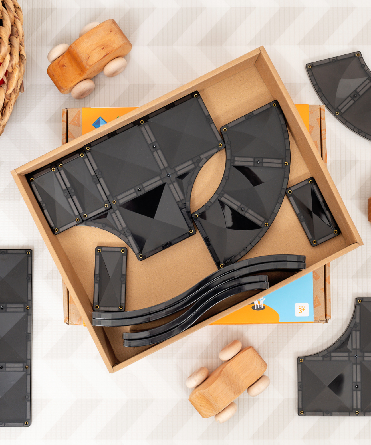 The captivating black tiles enhance the visual for roads, ramps and runways, while the exclusion of white lines and road markings maintains the open-ended nature intended by CONNETIX products, allowing children to reimagine pieces into their own creative builds.