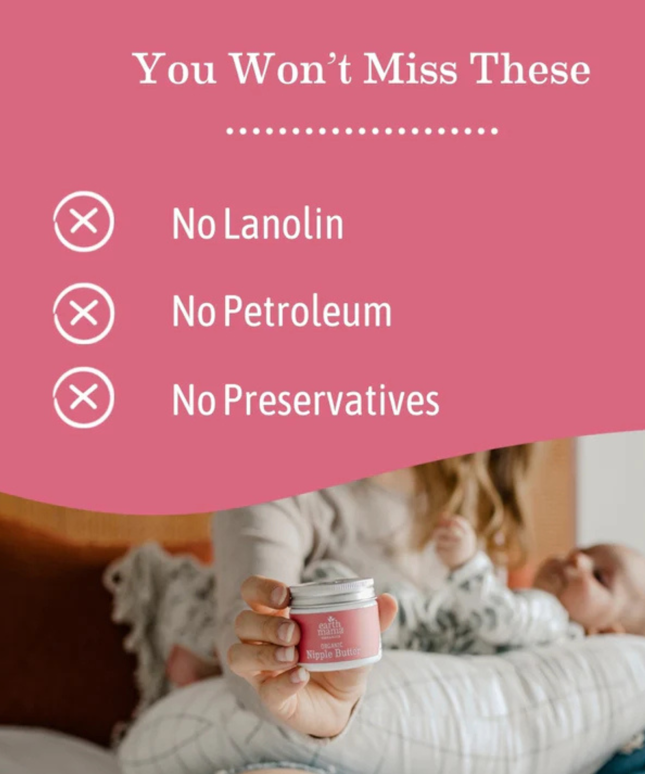 Earth Mama Organic Nipple Butter is buttery and botanical-rich, lanolin-free and non-sticky. It moisturizes dry skin, and brings your nipples back to their happy place. And since it just might end up in baby’s mouth, it’s Non-GMO Project Verified. So there’s no need to wash it off before nursing!