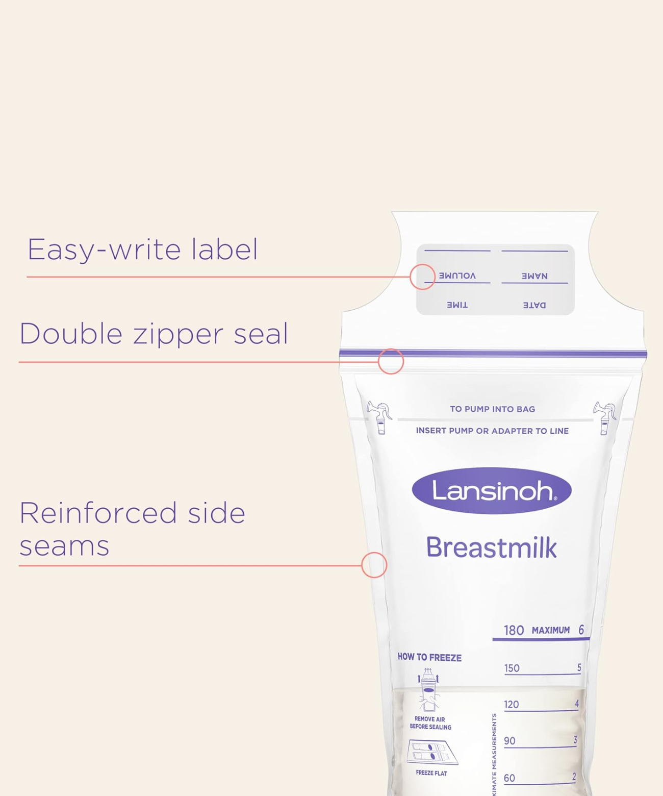 - Pump directly into bag using your Lansinoh pump, or most major pump brands using our pump-into-bag adapter (sold separately)
