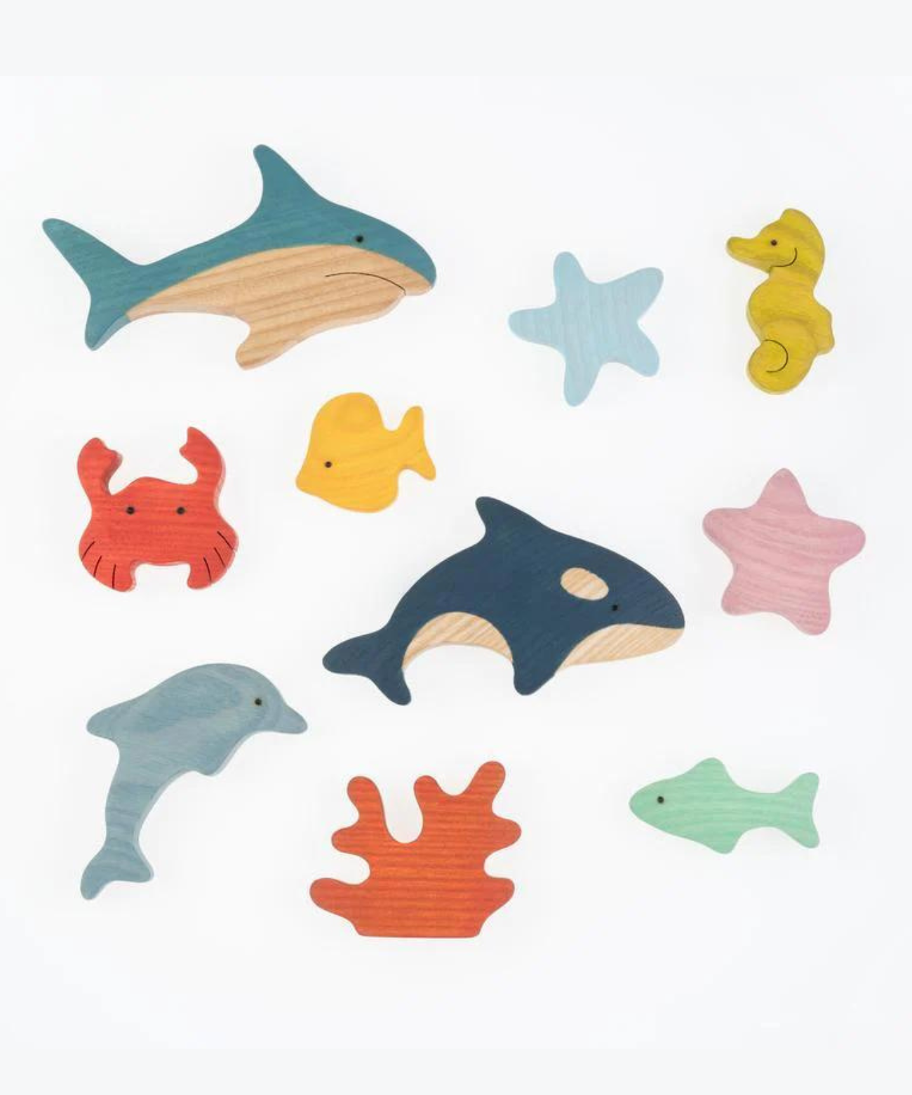 • Consists of a shark , killer whale, dolphin, seahorse, crab, starfish (pink), starfish (light blue), coral, fish (yellow) and fish (green).