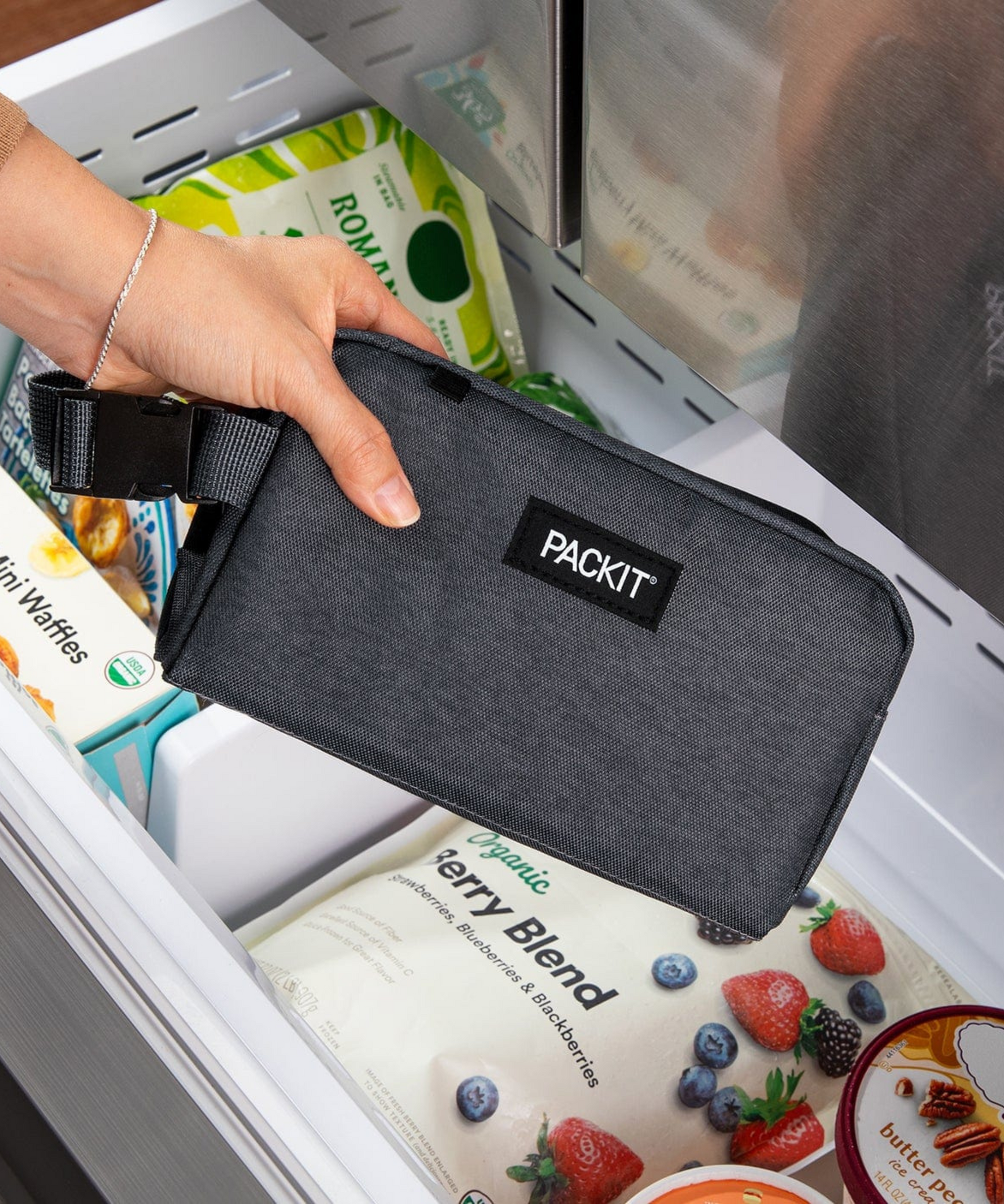 Snack It with our roomy yet small-ish Freezable Snack Box. It is smaller than PackIt’s Original Lunch Bag, making it ideal for fresh snacks on the go. It is also designed to fit inside backpacks, gym bags and diaper bags. There’s even a buckle handle that clips onto totes, backpacks and strollers.